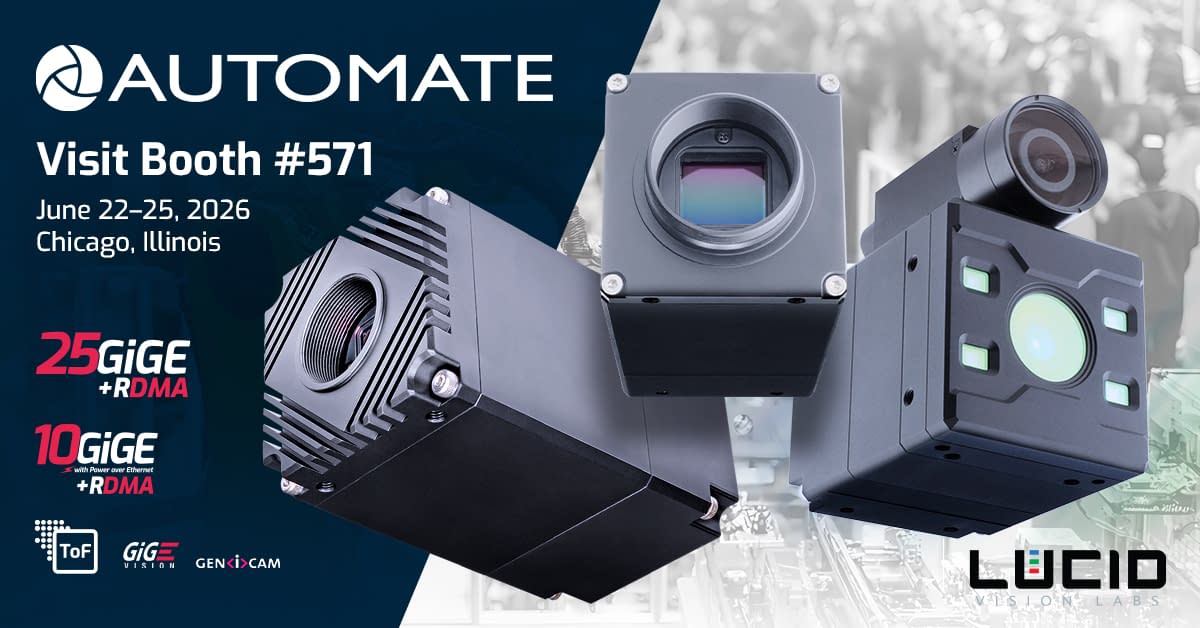 Burnaby, BC, Canada – April 20, 2026 – LUCID Vision Labs, Inc., a leading designer and manufacturer of industrial cameras, will showcase its latest vision technologies at Automate 2026, North America’s premier robotics and automation event, taking place in Chicago, IL, from June 22-25, 2026.